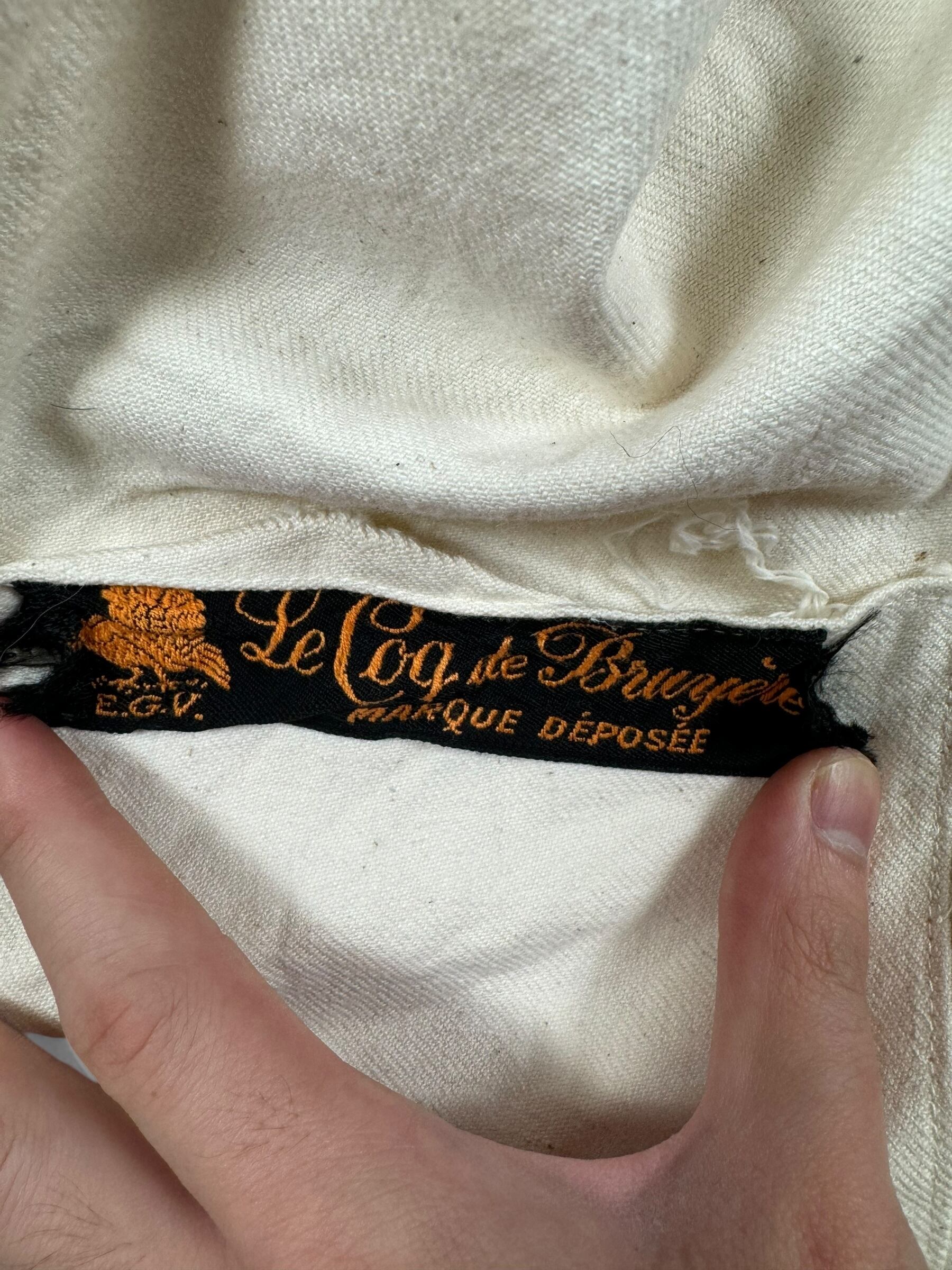 大きな丸襟、ネップがかった生地、デカタグと