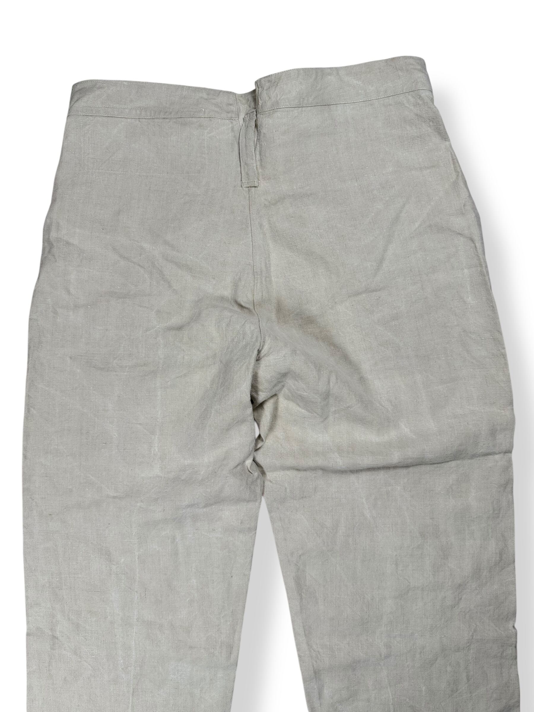 たっぷりとしたワイドシルエットに、潔いホワイトリネン。現代のスタイリングに落とし込めば、Tシャツ一枚でも雰囲気が出るし、ジャケットと合わせても抜群の存在感。ミリタリー由来でありながら、どこかモードな空気を感じさせる一本です。古い服にしか出せない生地の風合いと空気感は、レプリカでは決して味わえません。